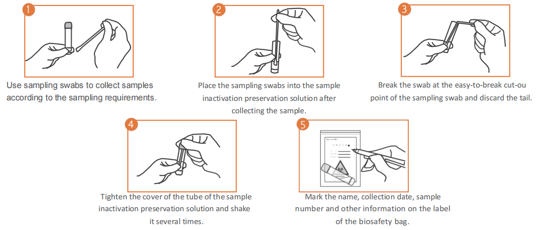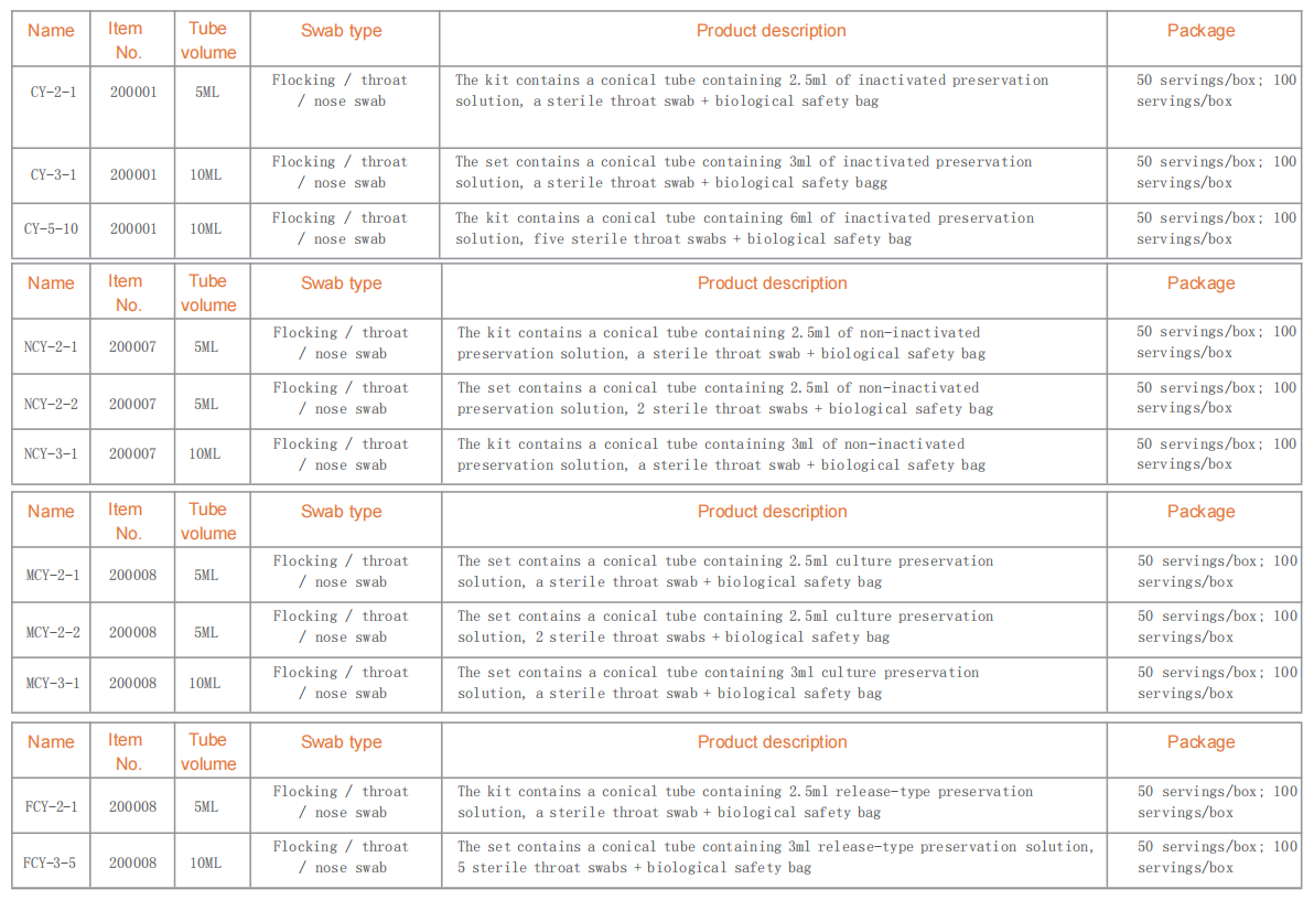 It consists of swab and / or cup, tube, etc. containing preservation solution. Non sterile.