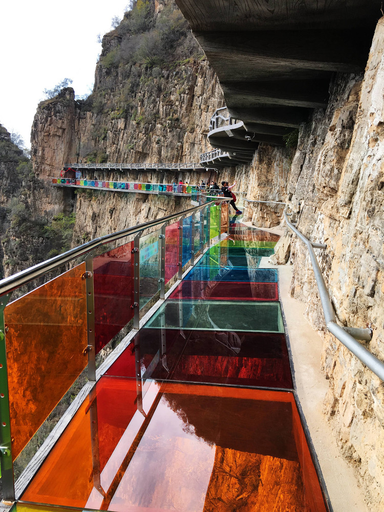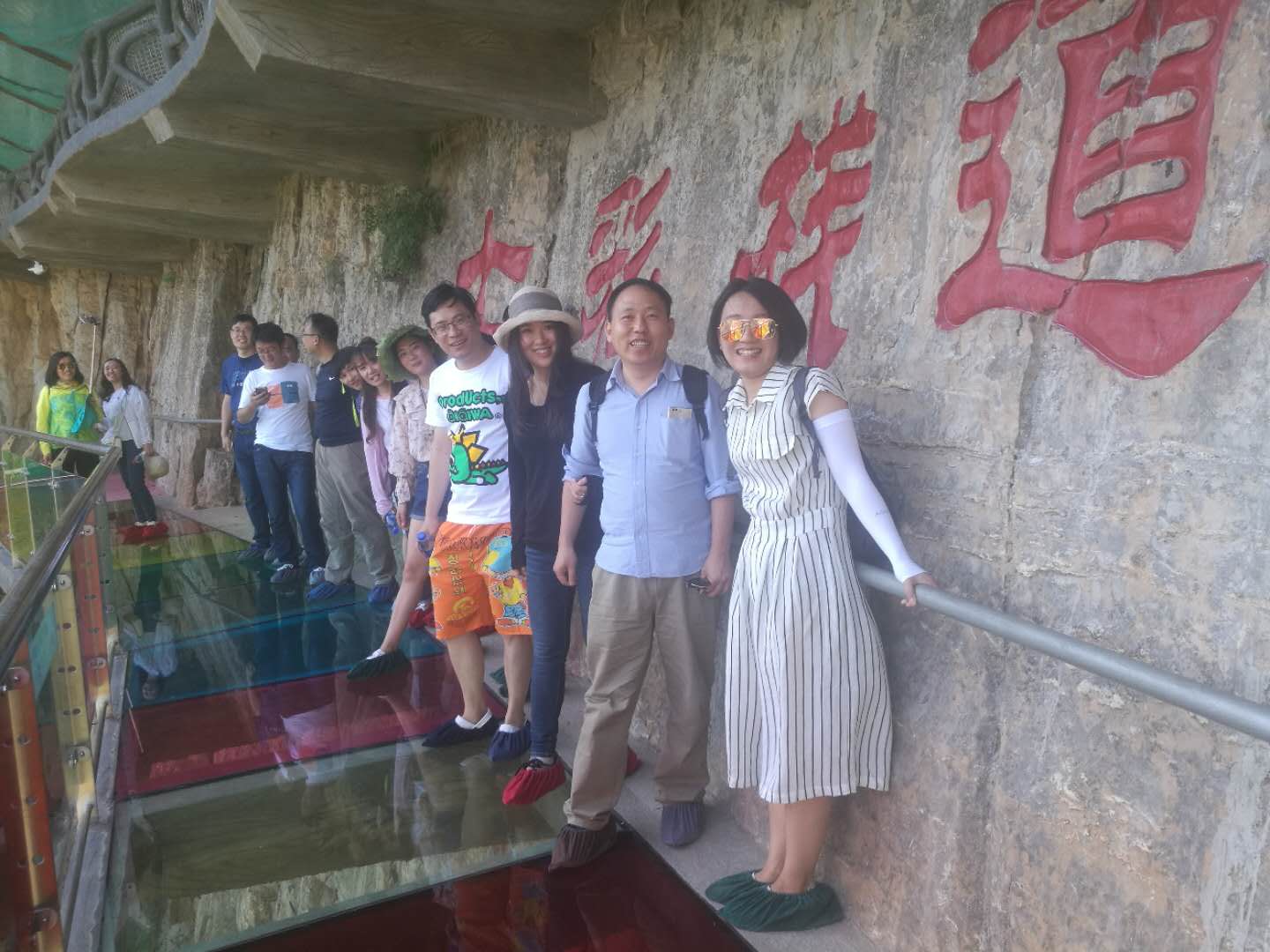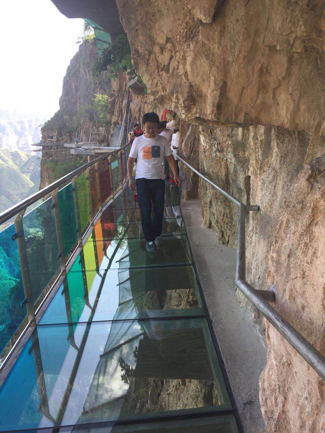 (豐盛的農(nóng)家菜) 團建活動part 2:挑戰(zhàn)七彩玻璃棧道 吃過午飯,一行人乘車去往東湖港。東湖港的玻璃棧道是七彩的,這是國內(nèi)首家“七彩玻璃棧道”,挑戰(zhàn)區(qū)全長1200米,其中七彩玻璃128米,高差600余米。走在玻璃棧道上,猶如踩著一條長長的彩虹橋,驚險刺激而又不失浪漫夢幻!