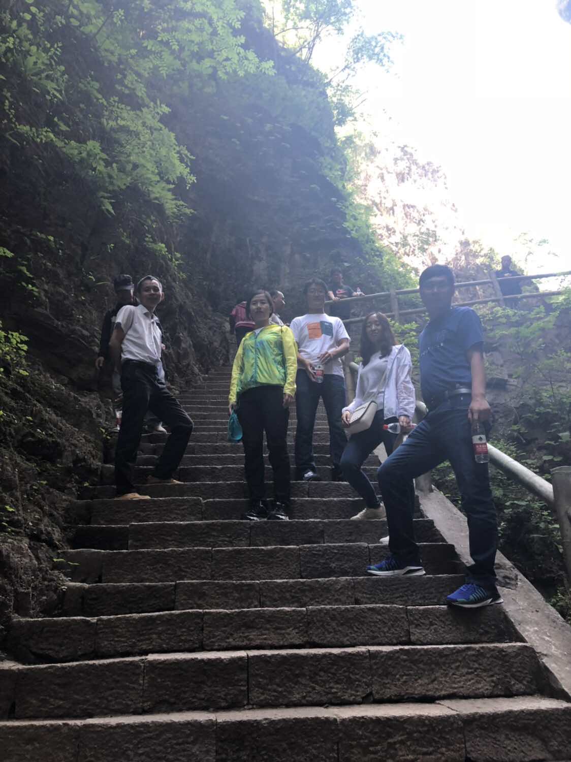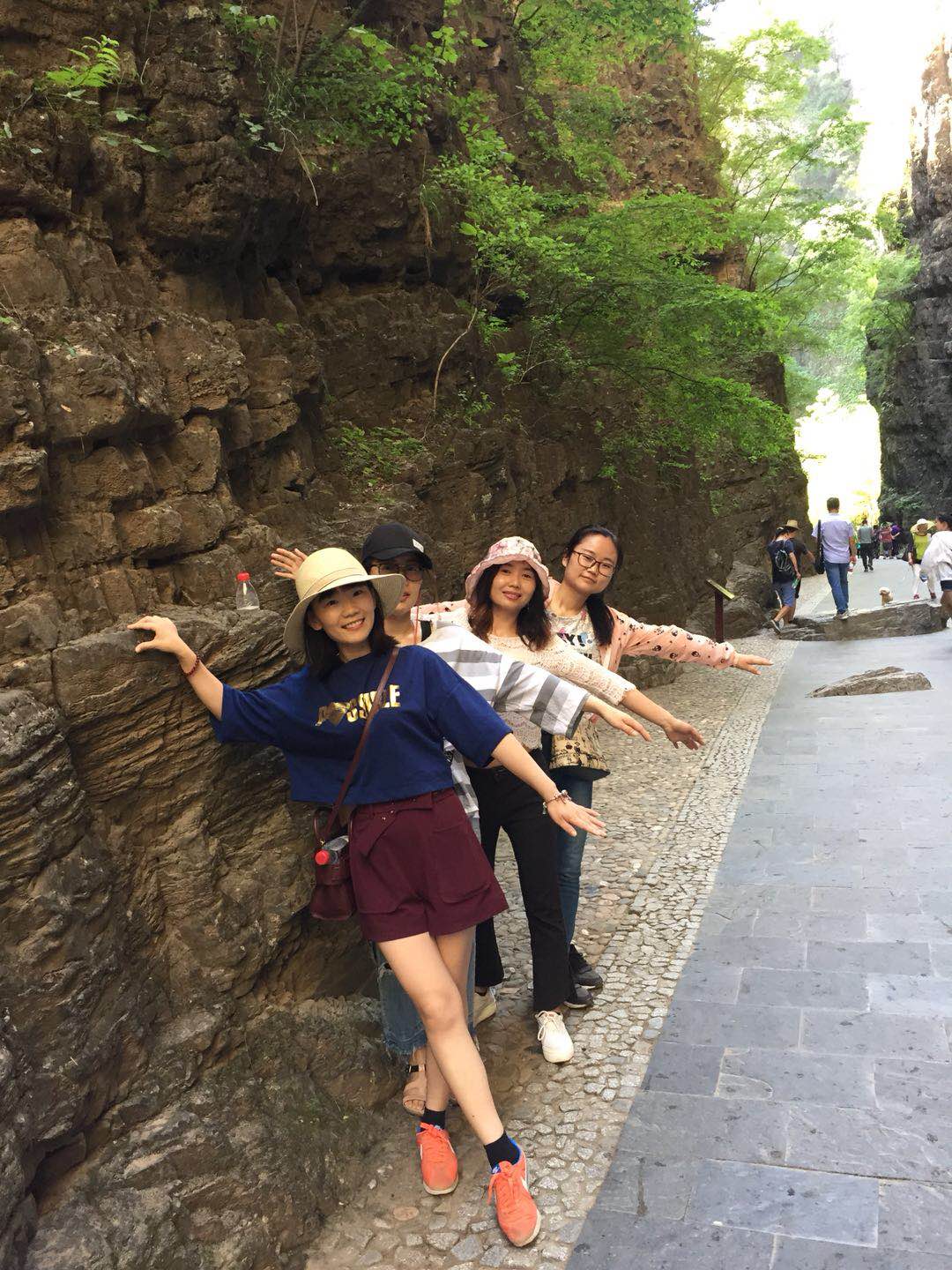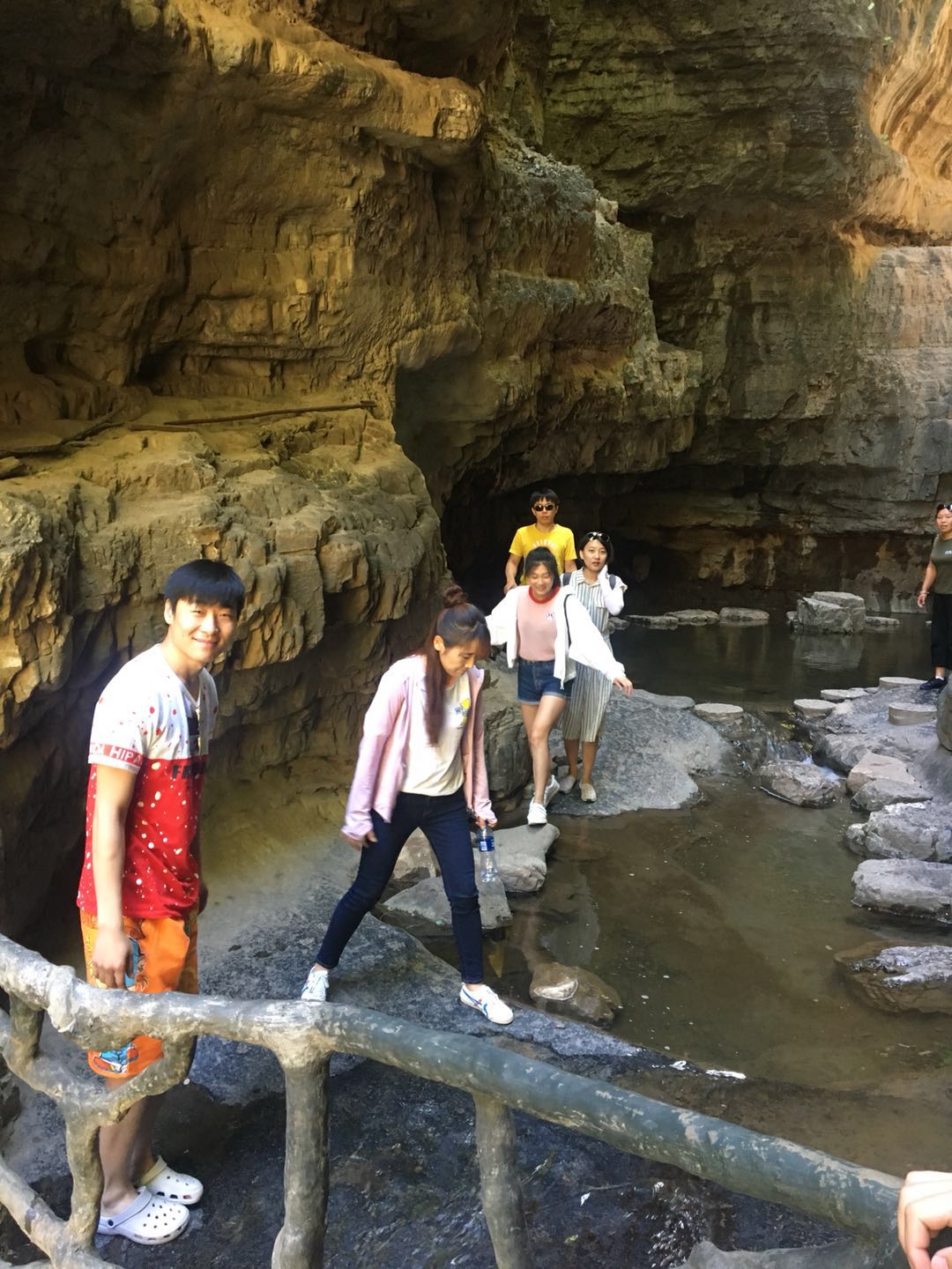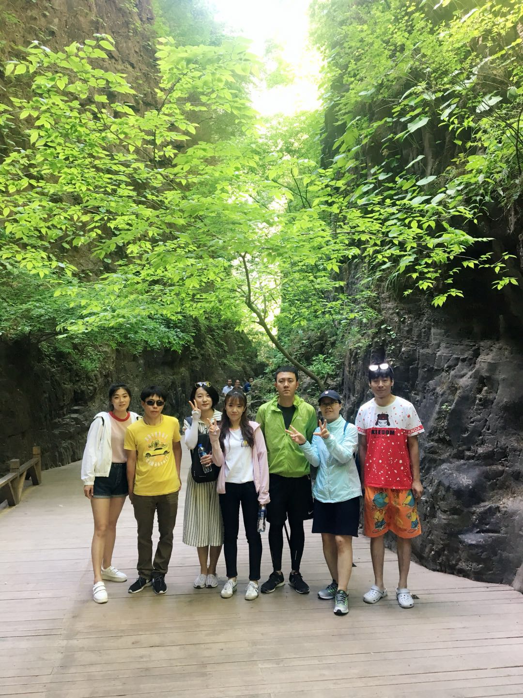 團建活動part 4:游覽“天下第一峽” 團建第二天我們要去到的是被譽為“天下第一峽”的百里峽景區(qū),聽聞百里峽天梯有三千余階,可是嚇?biāo)馈皩殞殏儭蹦兀液媒?jīng)過一夜的休息,大家精力已恢復(fù)大半。 走在狹窄的峽谷中,駐足而望,兩側(cè)聳然屹立的翠色絕壁,頭頂上若隱若現(xiàn)的一線天光,遠(yuǎn)處山巔的藍(lán)天白云,腳下忽左忽右的溪流……若不是那彩色纜車過于美好,“小芯”肯定是要徒步登上山頂?shù)?!沒錯,“小芯”真的是被纜車“色誘”過去的!?。?/span>