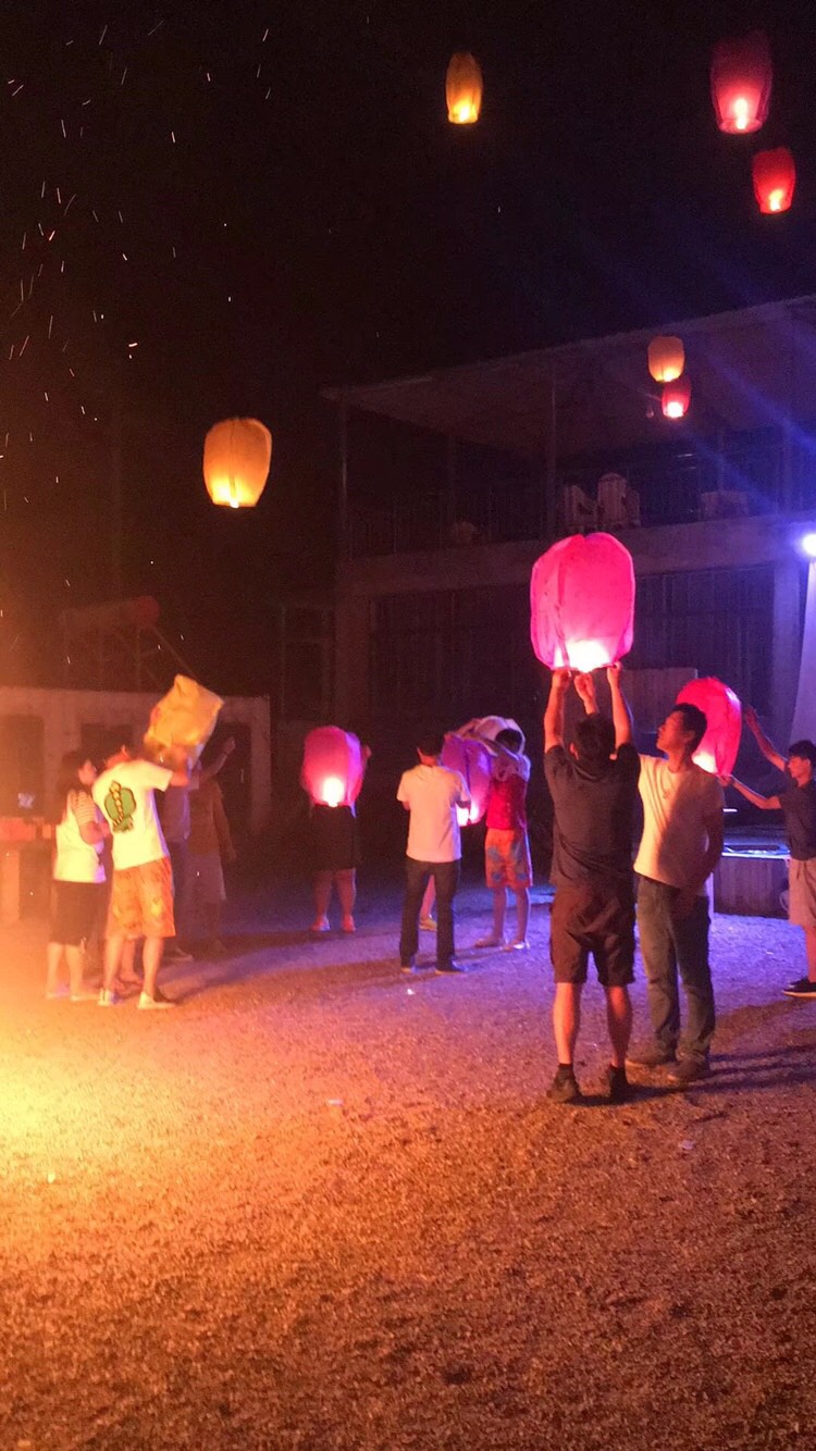 走過驚險刺激的玻璃棧道,回去吃個晚飯壓壓驚。 團建活動part 3:篝火晚會 篝火晚會可是本次團建中“小芯”最期待的環(huán)節(jié)呢!大家圍坐在農(nóng)家小院,點燃篝火,伴著美妙的音樂,放飛寫滿自己心愿的孔明燈。