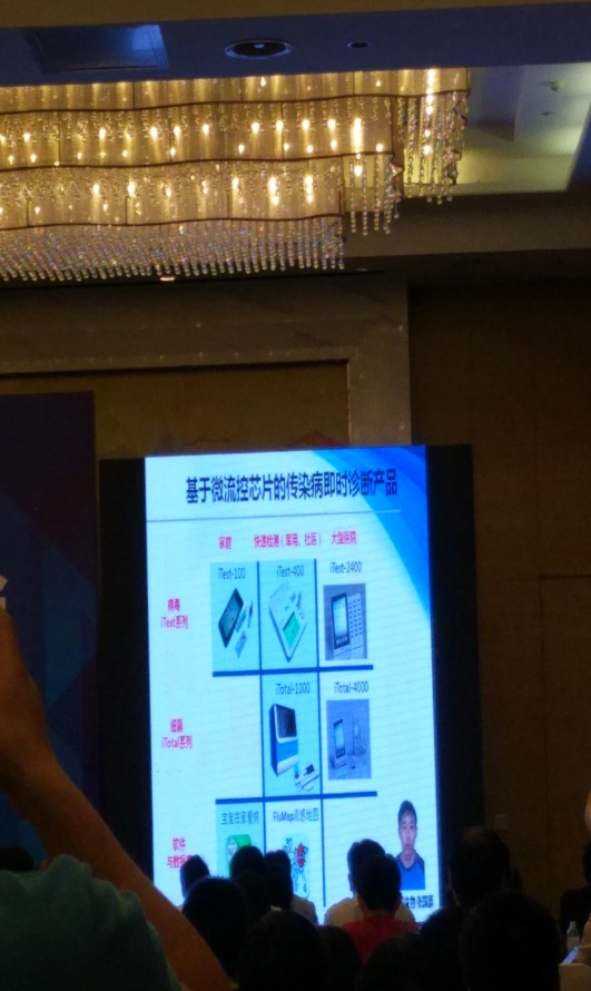 會議期間中國科學院大連化學物理研究所林教授做了關于“微流控芯片—POCT產(chǎn)業(yè)崛起的科學技術支撐”的演講報告,特別著重介紹了百康芯生物在此領域的發(fā)展成果—即時分子診斷產(chǎn)業(yè)化的一個案列,并介紹公司成功研制出來的即時診斷產(chǎn)品。林教授所在的大連